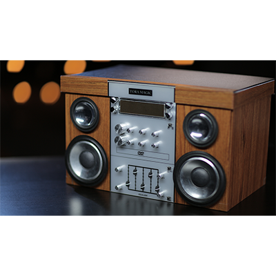 He then draws a CD player on a page in the book and then places the book on the table, then magically the book turns into a CD player like the one the magician drew on the paper.