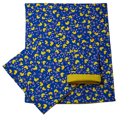 A bag is shown inside and out and then again and then again and then once more. Each time the bag is shown inside out the inside in a different design. Finally a banana or two or three are produced from the bag.
