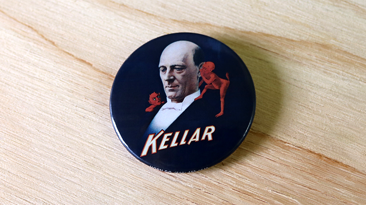 The Kellar pin-back buttons were created for Phil Temple to be sold during his lecture in England. The Kellar button was to be sold with the small Kellar trick book as a package. Only 300 of the booklets and buttons were made for this lecture. Unfortunately, the date Phil Temple was to board a plane for England, "911" happened and he never left the country. The buttons and Kellar booklets had been in storage since 2001.