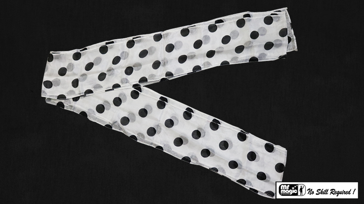 A beautiful streamer made of fine silk. This can be used in many ways, including effects in which two hankies appear to blend together and become one. This creates a wonderful transformation which never fails to surprise audiences. This particular streamer is 6 inches by 18 feet, and is decorated in white with black polka dots.