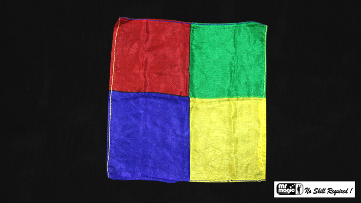 Four small silk hankies of four different colors are placed into your hand. With just a snap of your finger, all four silks combine to form a silk of the four colors.