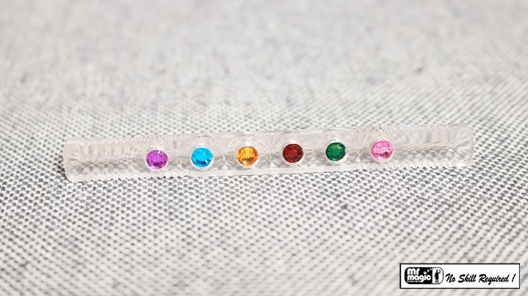 Show a small plastic rod with six different colored gems. Your spectator selects a gem by calling out a number between one and six. Shake the rod, and instantly the spots on both sides change to your spectator's selected color.