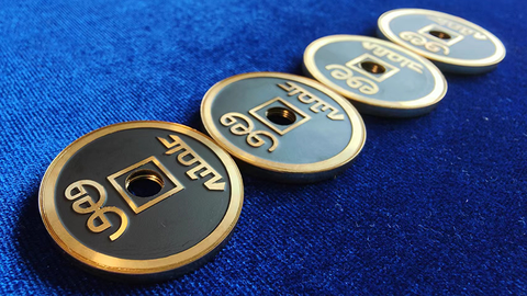 Four ancient coins miraculously changed positions on the desktop, and finally magically turned into sixteen ancient coins.