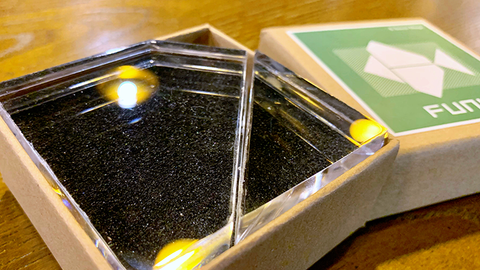 FUNK is an interesting puzzle product produced by Bacon magic. There are four exquisite irregular transparent puzzles in the box. Please try to piece them into a rectangle