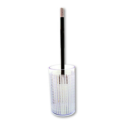 A fluted transparent glass filled with colored liquid is held in the left hand. Now the magic wand held in right hand is inserted into the glass & lifted. The glass in left hand is now seen suspended in mid air at the lower end of the wand held in right. Further the palm of the right hand is opened to show the wand also hanging on the right hand without any visible support.