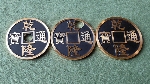 The instructional video explains different performance methods and routines in detail. The props include an ordinary ancient Chinese coin and two gimmick coins, which can be used immediately after opening the box.