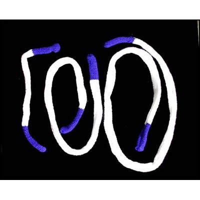 The magician displays three pieces of rope, each different sizes. He folds the pieces into his hand and when he stretches the pieces out they're all the same length!
