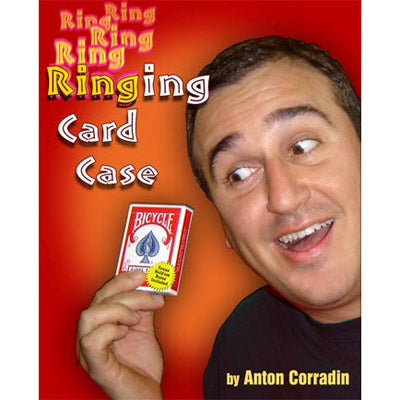 Nearing the end of his card routine, the Magician leaves the empty card case on the table for everyone to see. He then spots someone in the audience wearing a ring and asks if he can borrow the ring. The ring is placed in the Magician's right hand. The Magician then explains that with a little bit of magic the ring will travel from his hand to the closed empty card case lying on the table. He then picks up the card case from the table and opens his hand to reveal that the ring has disappeared. At the same time, he looks at the card case in his hand and gives it a little shake. To the audience's amazement, the sound of the ring moving around in the card case can be heard by all! The Magician opens the card case and turns it upside down, allowing the ring to fall into his hand. He presents the ring to the audience and shows that the card case is completely empty!