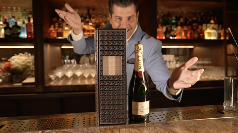 A great magic trick for your shows! Perfect for parlor, comedy and stage magic! Be the star of the party, making appear a bottle of Champagne, Whisky, Rum, Wine, Martini, or any other bottle you want!