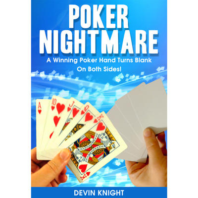 The performer's winning poker hand has gone to the worst poker hand. NOTHING! This effect will cause your spectators to react and scream when they see the visual and magical change of playing cards freely shown on both sides, instantly changing to blank cards shown on both sides. This is one of those effects that will have people saying, "What the f#@$ ."
