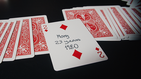 You show to the audience two decks of cards inside a deck holder that was from your grandfather, but which has something very special in one card that he wrote many years ago.