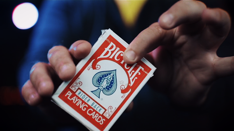 The package comes with everything you need to perform, including our custom production card boxes (made for Bicycle cards), and a complete download with Matthew Wright. You also receive six stickers, giving you the flexibility to make red or blue Bicycle gimmicks.